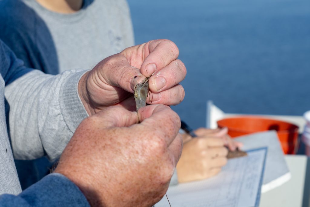 Once the catch is sorted, the shrimp are cataloged on their own to determine the “head count” and figure out the health of the shrimp population. This helps CRD and DNR’s commissioner make decisions on when to