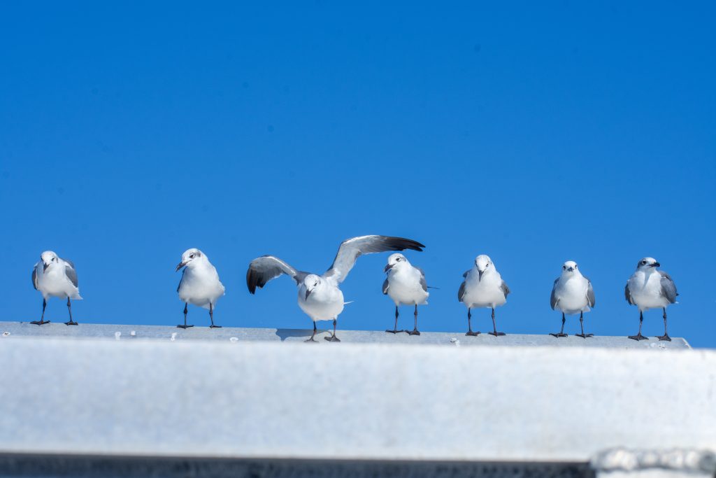 The net is dragged on standardized tow times at fixed sample sites in order to collect consistent, comparable data. Once the net is pulled up and emptied onto the culling table, the birds know it’s dinner time. We didn’t have any super brave birds, but we did have a few picking on each other.