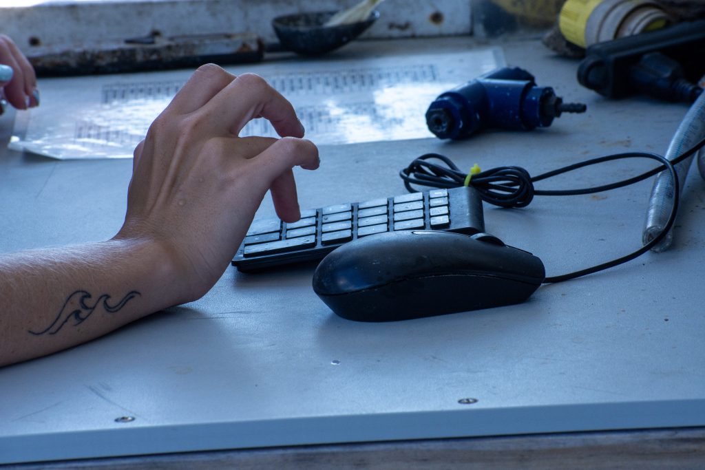 On the other side of the boat, a similar process is done, but with all other species caught. This data is then entered into spreadsheets where it will be used for similar purposes as the shrimp. That poor number pad.